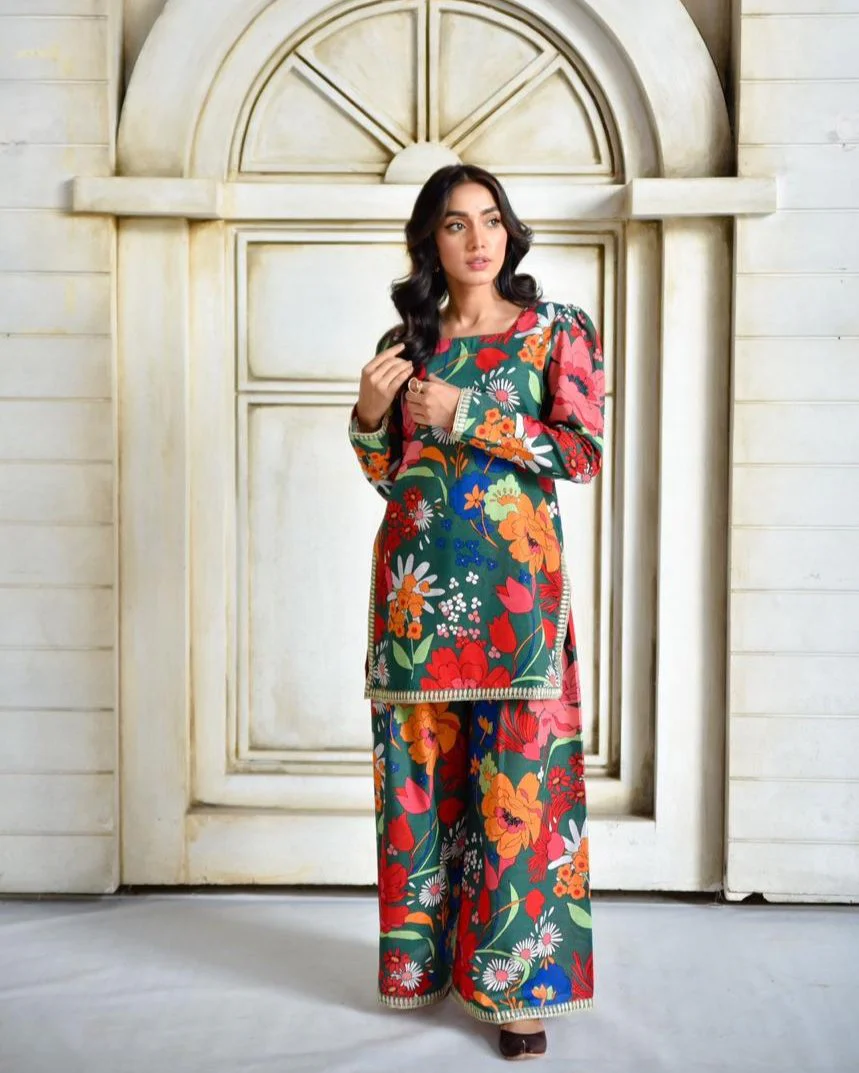 Elevate your style with the Green Glamour Embroidery Khaddar Set, a stunning 2-piece ensemble that embodies elegance and sophistication. This set is crafted from premium khaddar fabric, featuring a rich green base beautifully adorned with intricate embroidery that showcases floral motifs. The artful stitching adds a touch of luxury, making this outfit perfect for special occasions and festive gatherings. The Green Glamour straight-cut kameez pairs seamlessly with tailored trousers, offering a flattering and comfortable fit. Green Glamour is a perfect blend of traditional craftsmanship and contemporary design, ensuring you stand out with grace and poise.