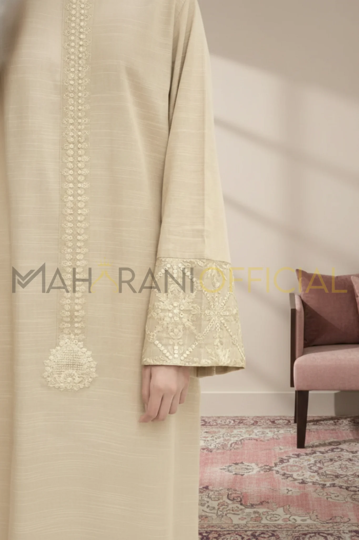 The premium khaddar fabric provides warmth and durability, making it an ideal choice for cooler seasons while maintaining a graceful, timeless look. Designed with a classic silhouette, Sandstone is perfect for daytime gatherings, office wear, or semi-formal winter occasions where you want to make a poised, effortless statement.